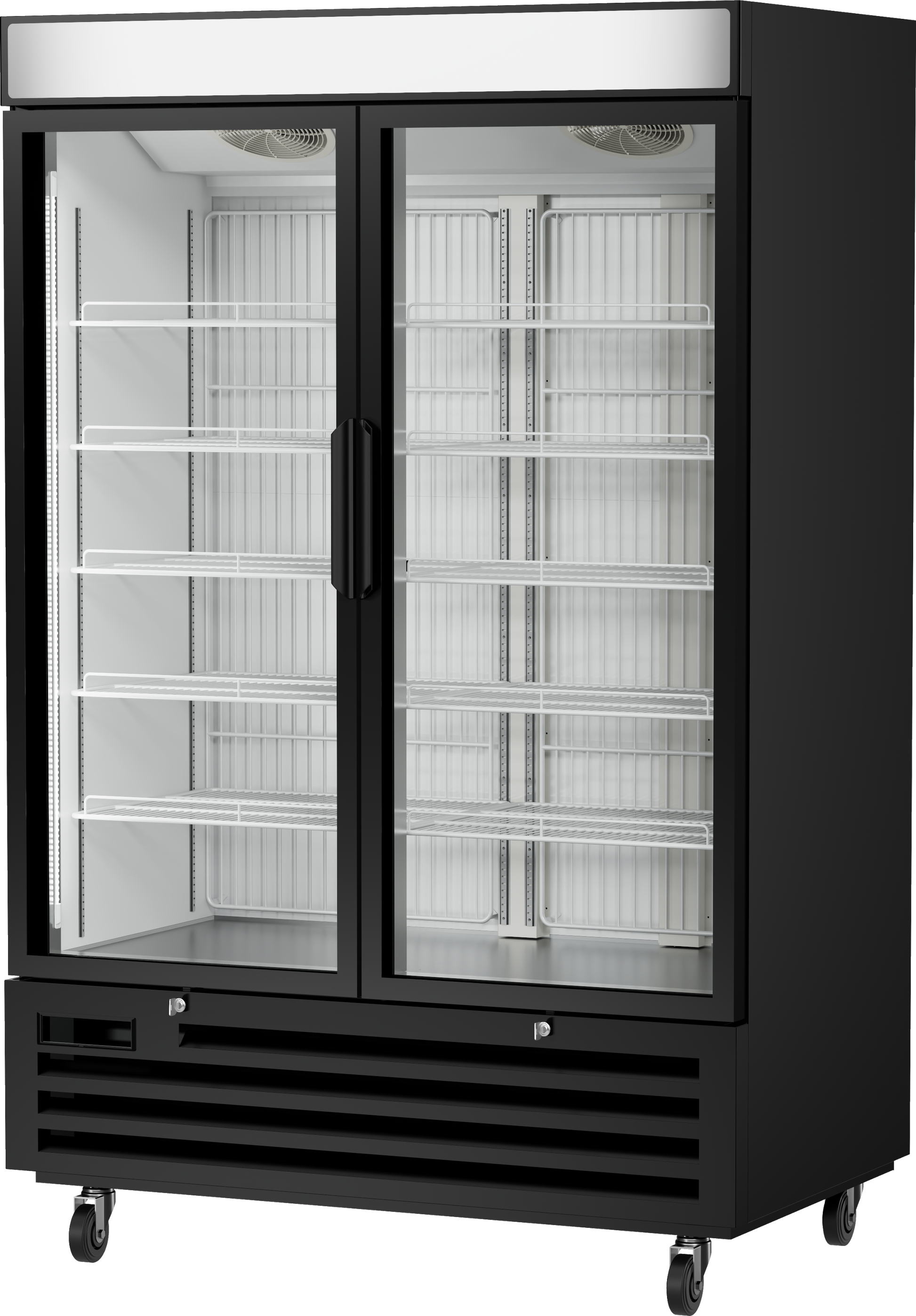 Inverter Compressor Swing Glass Door Fridge 54R Dims 1360*830*2100 Fan Cooling; Temperature Range: -1~+5°C; Voltage:220V/50Hz/1PH; Refrigerant: R290; Compressor: Inverter Embraco; EBM fan motors; Dixell digital thermostat; With inner vertical LED lighting; Shelf: 5PCS each door, with price tags; Frameless double glazed LOW-E glass door; Color: Custom.