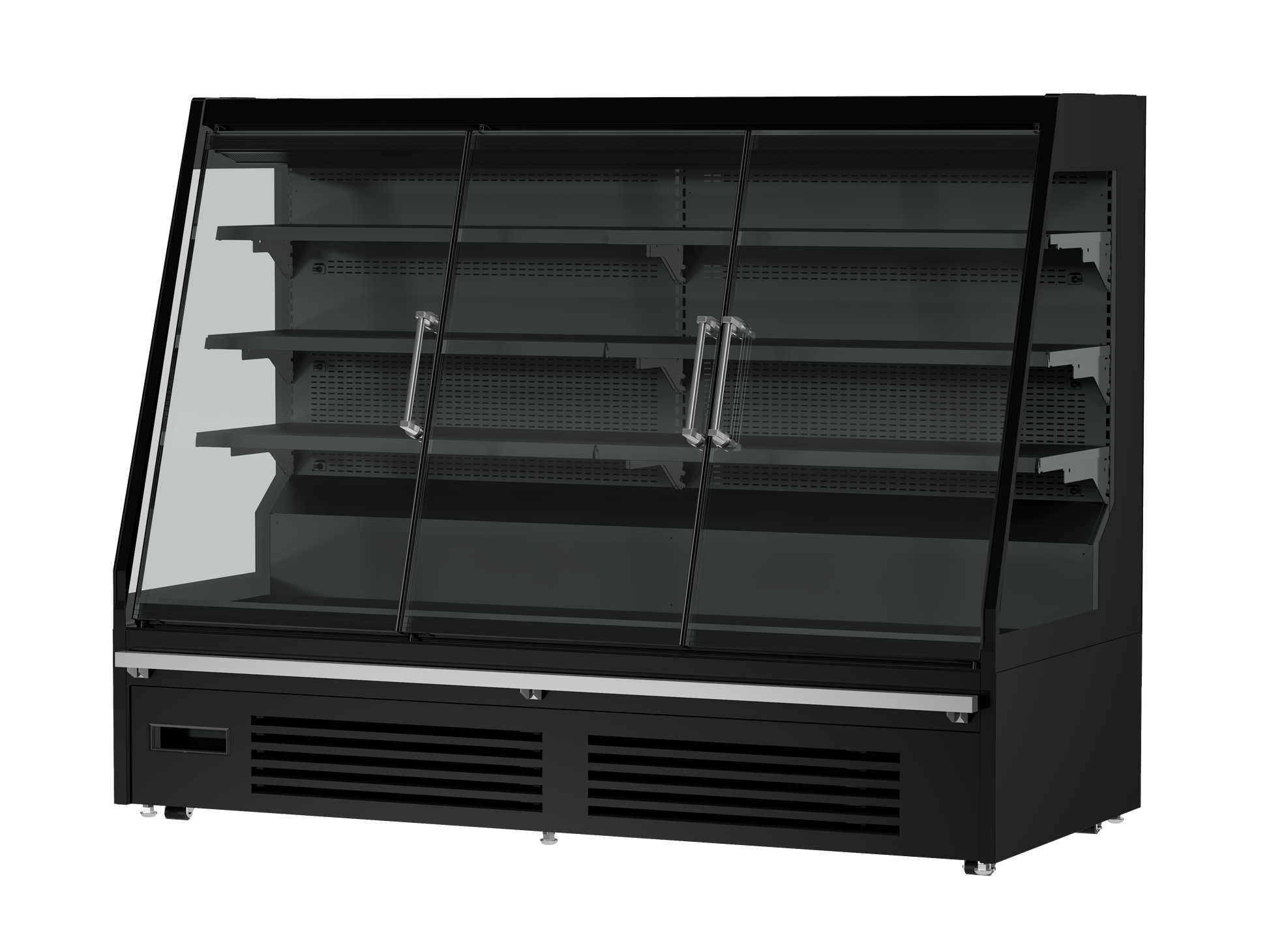 Shelf: Base + 3pcs Up shelf, with price tag & plexiglass front riser; LED lighting for each shelf and top; Full transparent double glazed anti-fog glass door; Color: Custom .